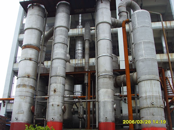 公司還涉足高濃度污水處理行業(yè)。經(jīng)過公司研發(fā)人員的努力,開發(fā)出了YBJXH型強制降膜循環(huán)多效、TVR、MVR蒸發(fā)器用于處理工業(yè)污水,并在聯(lián)邦制藥成都和內(nèi)蒙古公司、印度阿拉濱度、煙臺萬潤精細(xì)化工等應(yīng)用成功。另在2002年山東魯洲集團河南公司成功利用管束干燥機的廢熱制造了18噸廢熱蒸發(fā)器,用至現(xiàn)在。其中聯(lián)邦制藥成都公司選用的污水處理蒸發(fā)器有:50噸一套,35噸2套,12噸一套;聯(lián)邦制藥內(nèi)蒙古公司選用50噸污水處理蒸發(fā)器共3套;液糖車間YBJM30噸四效降膜蒸發(fā)器2套;YBJM20噸四效降膜蒸發(fā)器2套。印度阿拉濱度25噸1套、15噸3套、10噸1套、5噸1套;2.5噸8套等等。